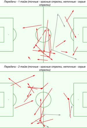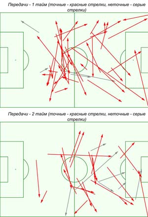 Для простого сравнения берем действия пятерых центральных хавбеков обеих команд