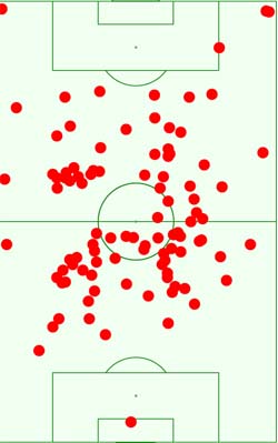 Денис действовал в привычных для себя игровых зонах. В его плюсы можно занести похожую активность вблизи ворот соперника (7 ТТД), а также 10 действий возле своих ворот. Для центрального полузащитника это весьма приличный результат (у того же Лэмпарда три подобных ТТД, у Джеррарда два, у Тимощука девять). В остальном же Гармаш выполнял установку тренера, без какой-либо серьезной самодеятельности на других участках поля.